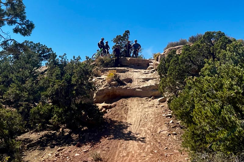 The trail has three distinct zones. The top portion cuts through aspen forests and is relatively flowy, with some technical sections mixed in. Descending through here is fast, and you can start looking for long trail gaps to pull for. As you leave the aspens, you enter into a much more flowy portion of the trail lined with sage and juniper. Mixed in with the flow are fairly mellow rock rolls and drops worth stopping to scout.
