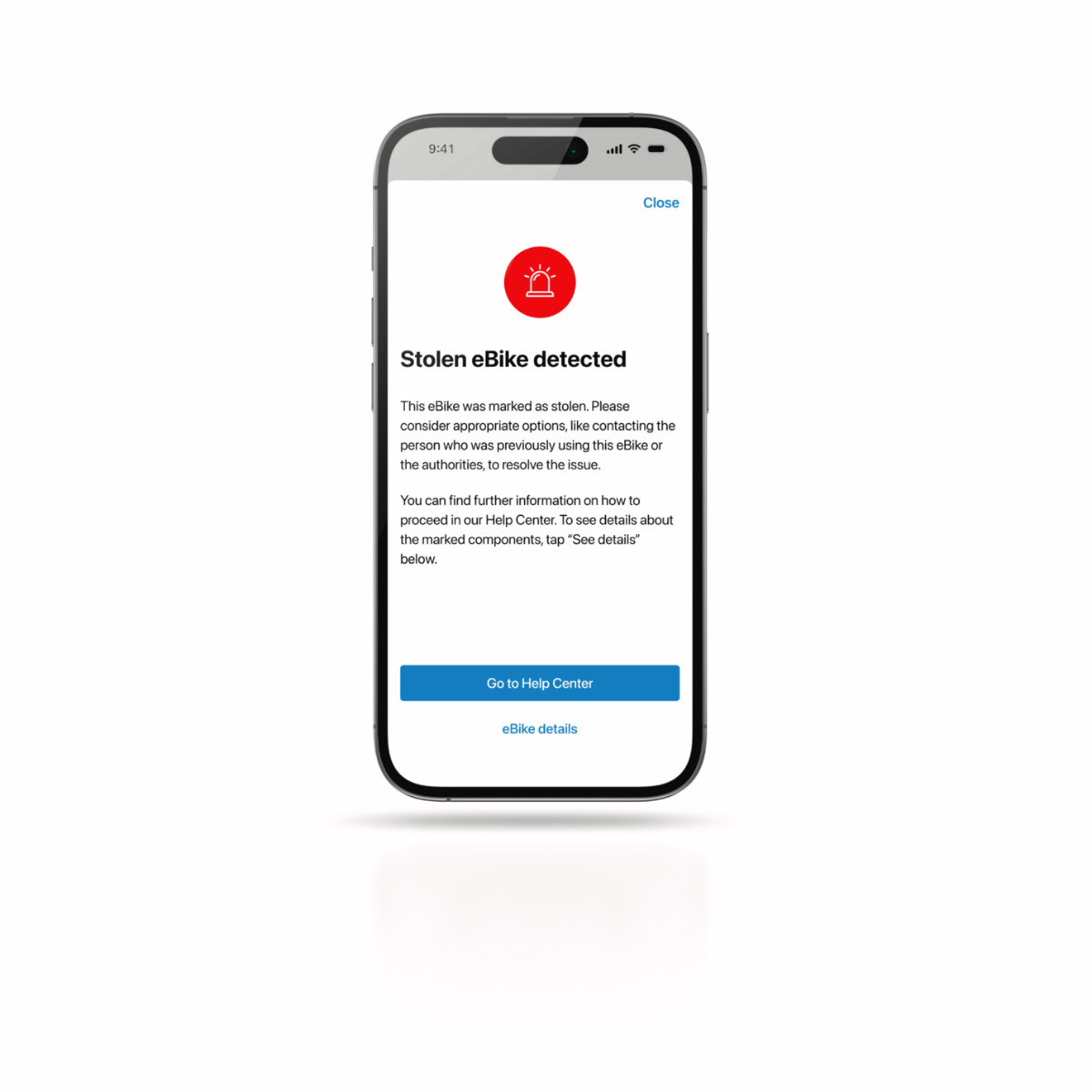 If an eBike or a battery is marked as stolen, it can be identified as such throughout the entire digital ecosystem of Bosch eBike Systems. This makes reselling the eBike difficult and increases the chances of the owner getting the eBike back. Buyers of used eBikes, dealers and public authorities are sent a warning when they attempt to connect to the eBike via the eBike Flow app. This includes the serial numbers of the components that are marked as stolen. In addition, the connection with the eBike Flow app is permanently blocked. It is no longer possible for the eBike to receive over-the-air updates or for custom riding modes to be selected. Dealers also receive a warning in the DiagnosticTool, the diagnostic software from Bosch eBike Systems, when they connect the eBike for servicing.