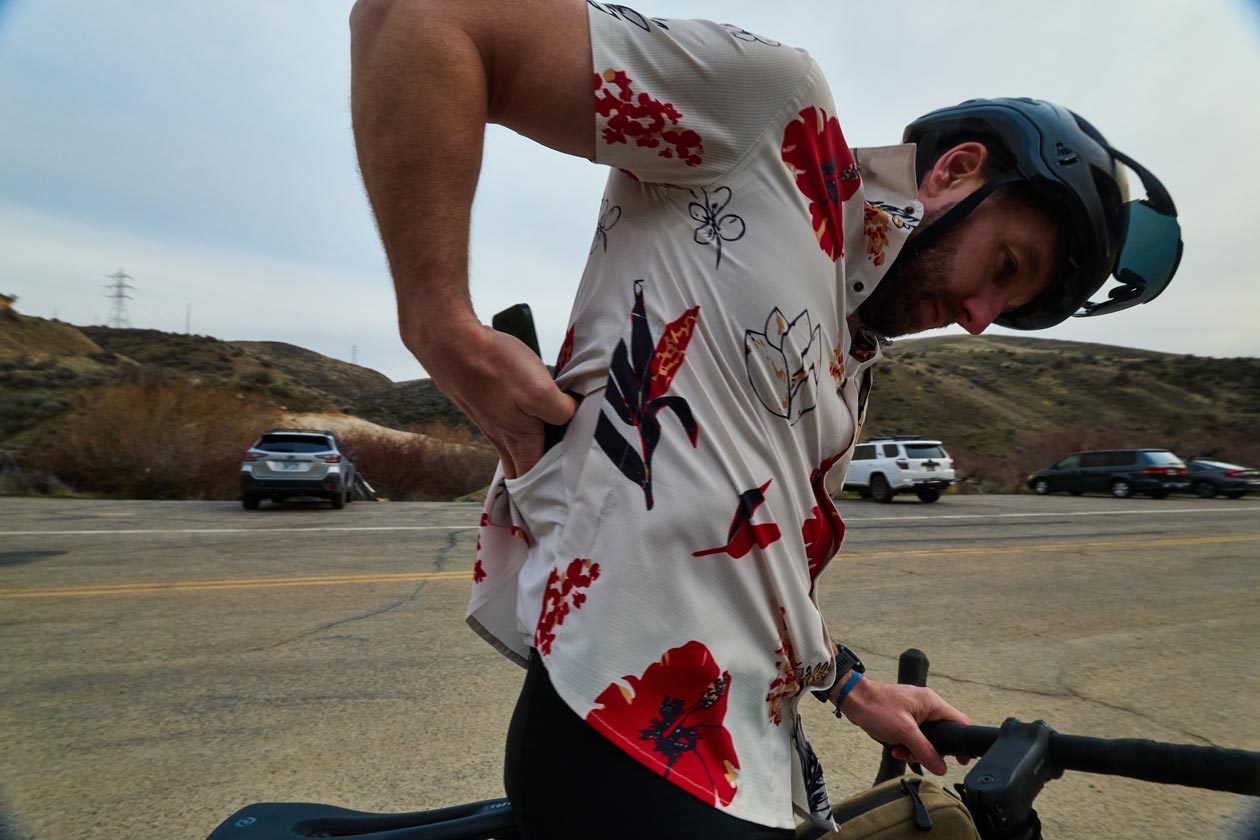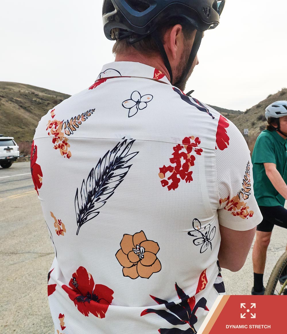 At first glance, it looks like your favorite resort shirt. But underneath the eye-catching design is serious performance: a hidden compression jersey for uncompromising storage, integrated side-seam magnets for easy access, four-way stretch that moves with you, ventilation that you can’t see but can feel on the hottest of rides. A specialized fabric that’s antimicrobial, winkle-resistant, and machine washable. No sweat. No squeezing into lycra. No compromises.