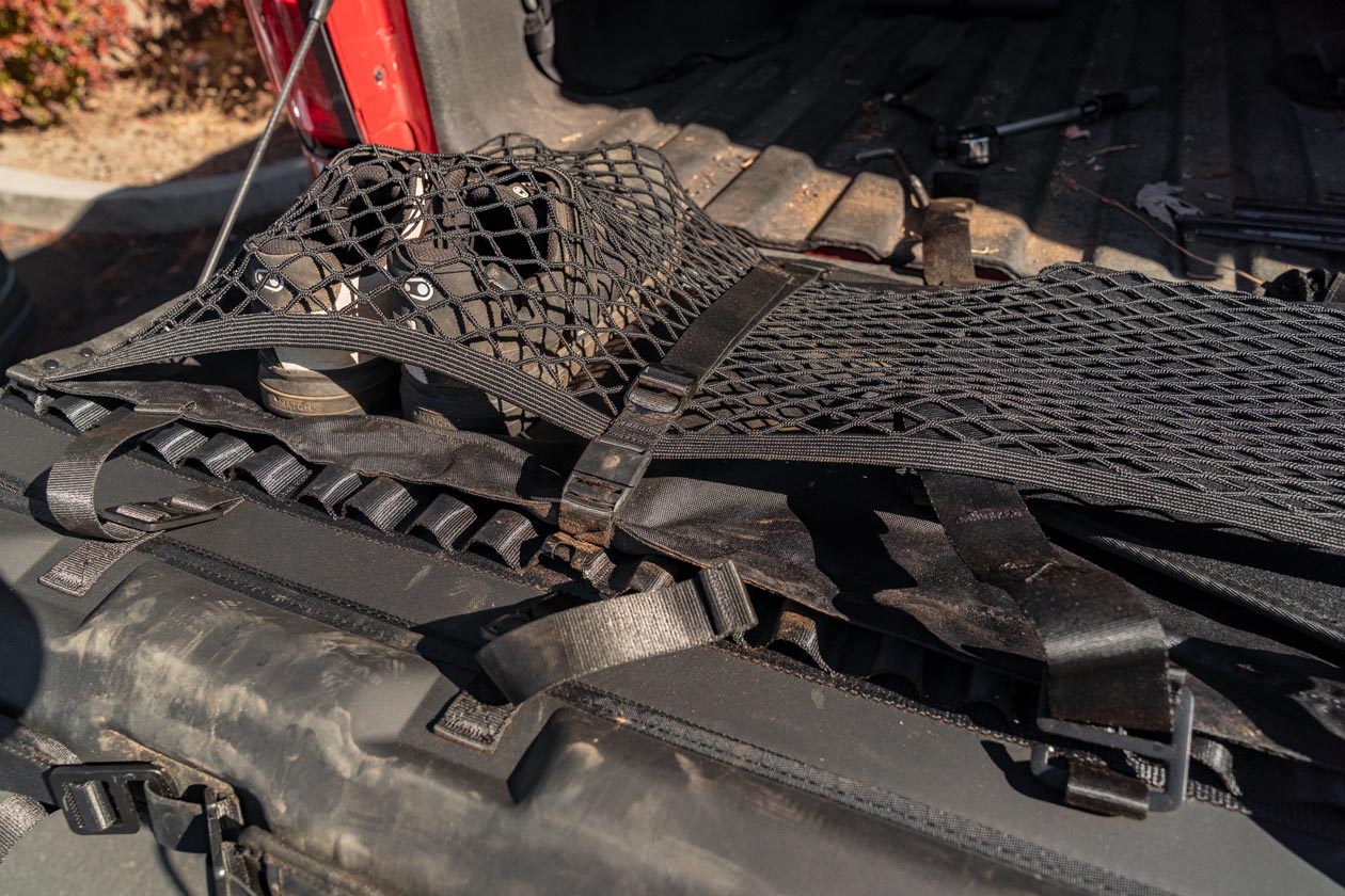 The Cargo Net was a nice little addition, but one that I thought I would never use. However, it has been holding a pair of shoes and DH knee pads for weeks now. I have a Soft Topper installed on my truck, so the cargo net allows me to store some of those essentials, so I don’t have to climb into the bed to grab things if they slide around. The Cargo Net is also a great place to store the back-up camera flap as well when it’s not in use.