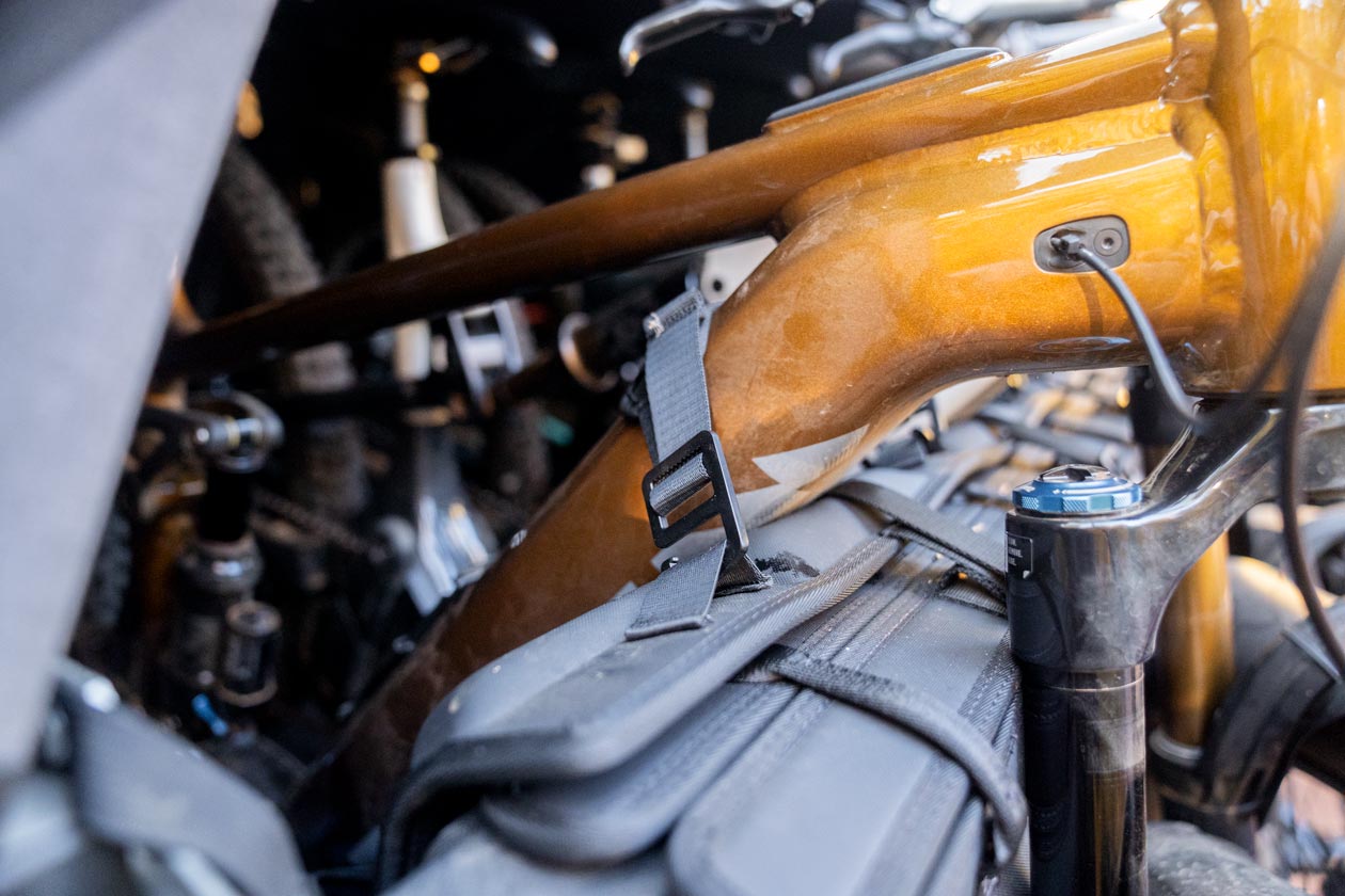 IN USE | I’ve put a couple hundred bike hauling miles in with the pad now over a few months. As a tailgate pad, the Basecamp 3.0 Pad transported my bikes to the trail safely and securely. From analog bikes to the thickest of downtubed eMTBs, the bike straps did a great job of holding the precious cargo. Even without the straps, bikes stayed in place very well when used with the Skid Plate attachment. The added padding cradled the bikes just enough to prevent them moving or sliding side to side. The raised pads on the outside facing panels offered plenty of cushion where the fork stanchions landed as well.