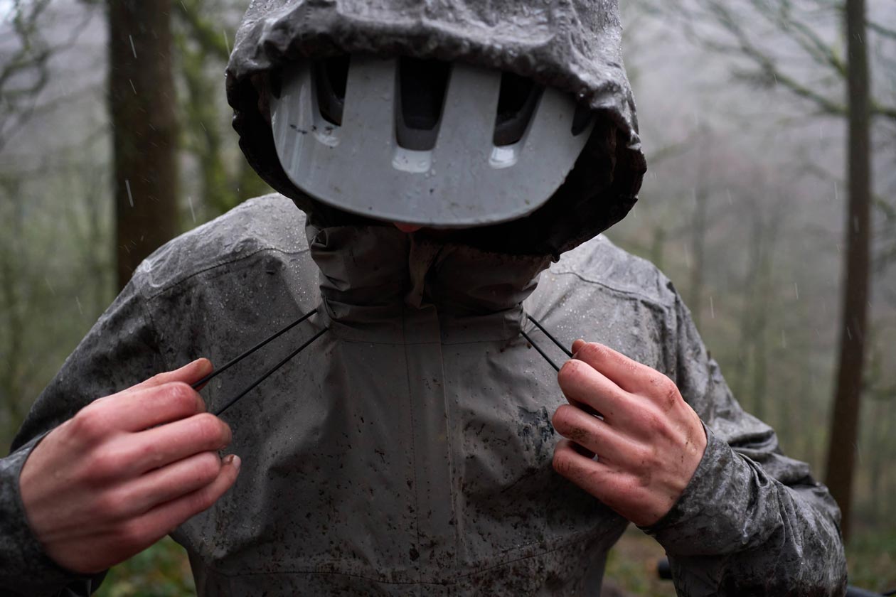 THINGS I DON’T LIKE | The hood Fox Racing has used for the Ranger 2.5-Layer Water Jacket is nice and large, which is great for fitting helmets underneath, but I found it quite insecure. The elastic cords do cinch the hood into the helmet, but there is no way to secure the tension effectively, so you may find these cords just come loose again, and the hood blows back down.