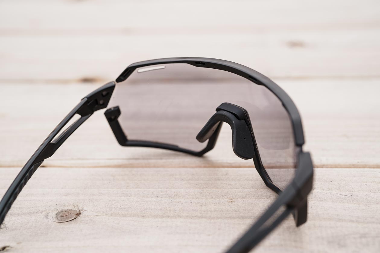 COLE’S TAKE | The fit of these glasses has worked very well for my face shape and with a range of modern half‑shell helmets. During our 10‑day SL e‑bike shootout in the Fall, I wore them for 8+ hours a day without any issues with pressure points, slipping, or interference with helmet straps. The adjustable nose piece made it easy to fine‑tune the fit for my face shape, so they were comfortable in use.